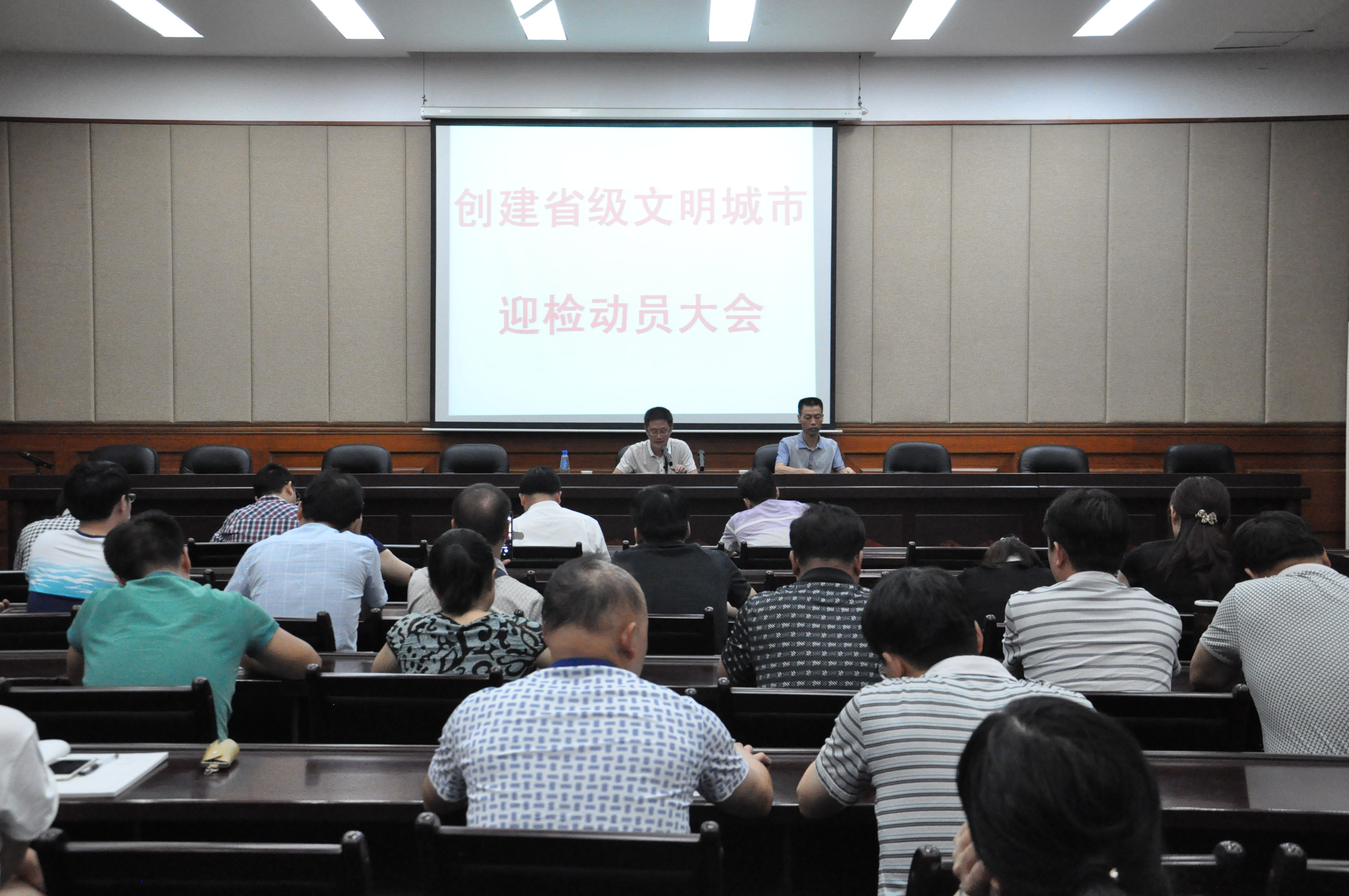 为进一步做好我市创建省级文明城市迎检工作,7月22日,asia28365.com召开创建省级文明城市迎检动员大会,对创建工作进行再动员、再部署。党组成员、副局长舒荣作动员讲话,全体干部职工和二级机构负责人参加动员大会。