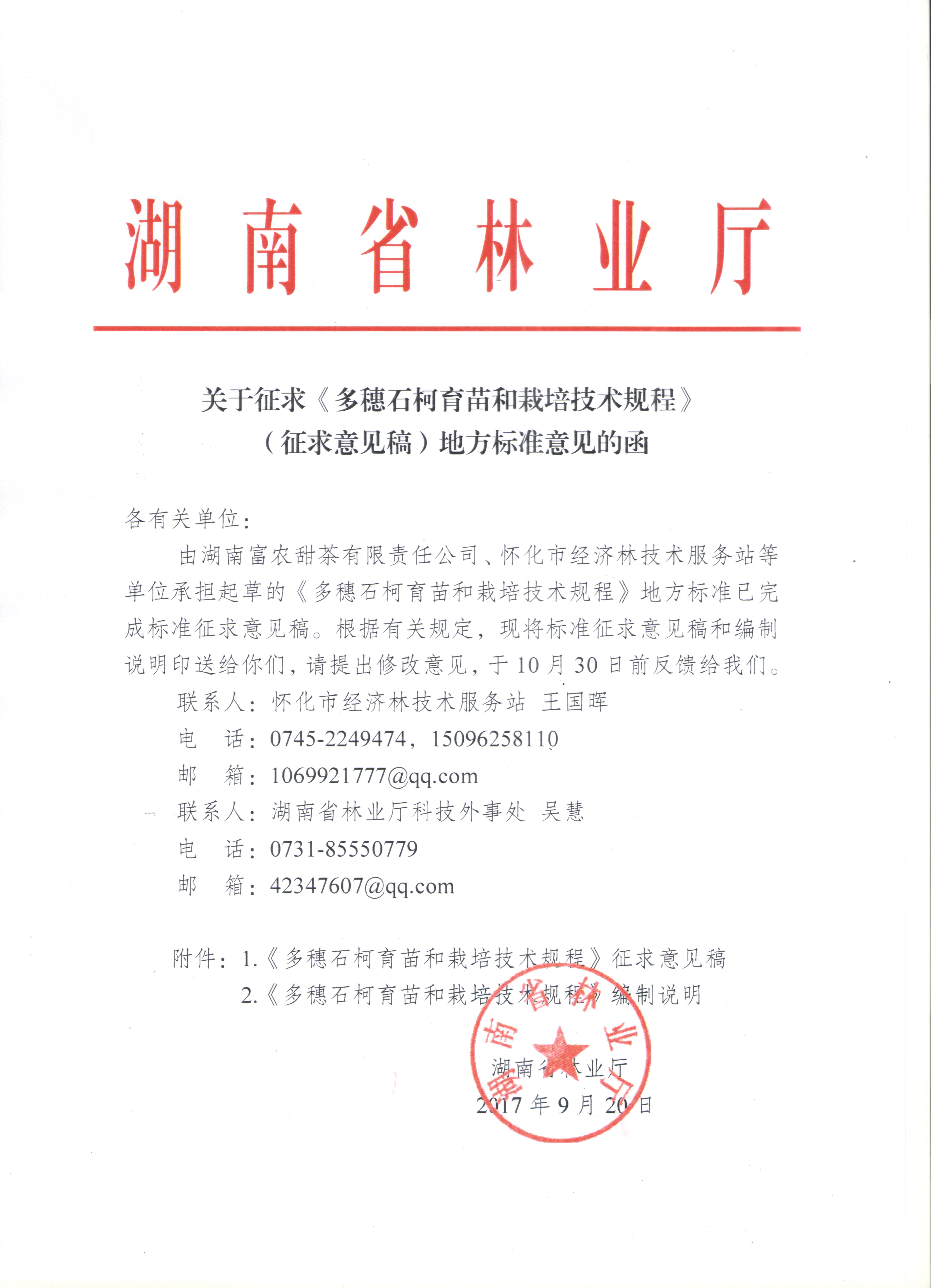 多穗石柯育苗和栽培技术规程征求意见函